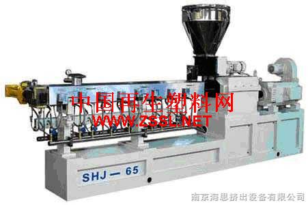 SHJ65平行双螺杆挤出机应用范围 用于塑料填充改性、增强改性、共混改性、色母料、各种电缆料生产, 产量100-300kg/h .